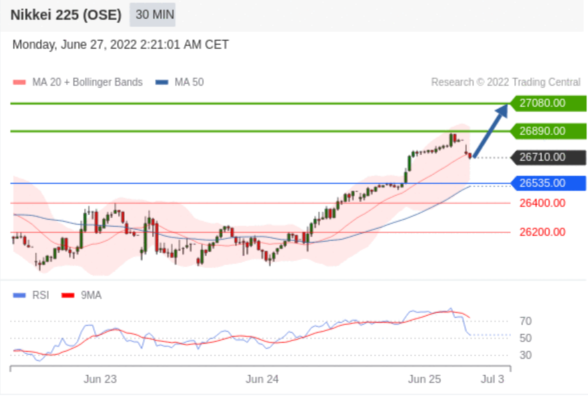 交易策略: 在 26535.00 之上,看涨,目标价位为 26890.00 ,然后为 27080.00 。