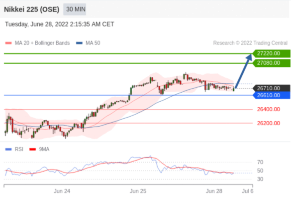在 26610.00 之上,看涨,目标价位为 27080.00 ,然后为 27220.00 。