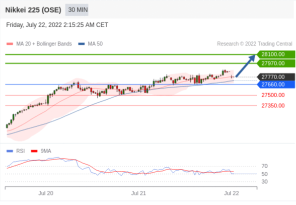 交易策略: 在 27660.00 之上,看涨,目标价位为 27970.00 ,然后为 28100.00 。