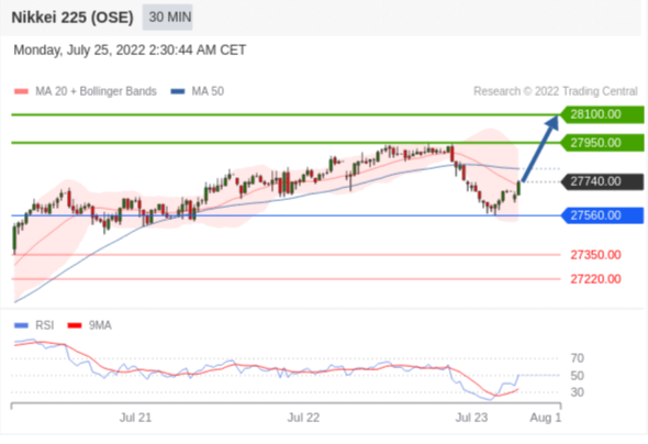交易策略: 在 27560.00 之上,看涨,目标价位为 27950.00 ,然后为 28100.00 。