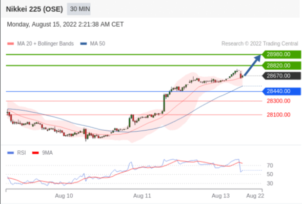 交易策略: 在 28440.00 之上,看涨,目标价位为 28820.00 ,然后为 28980.00 。