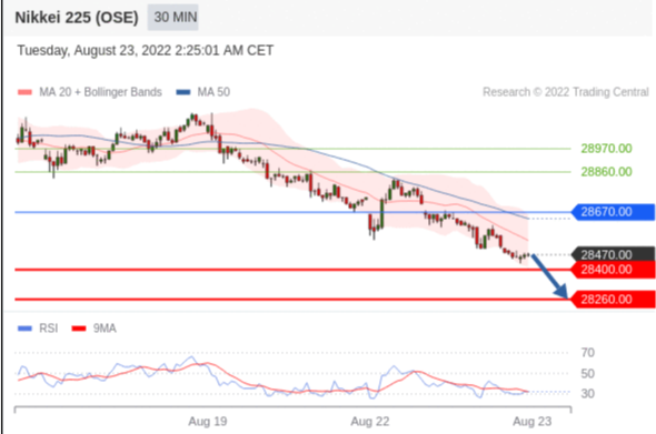 交易策略: 在 28670.00 之下,看跌,目标价位为 28400.00 ,然后为 28260.00 。