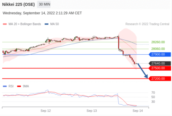 交易策略: 在 27900.00 之下,看跌,目标价位为 27500.00 ,然后为 27200.00 。