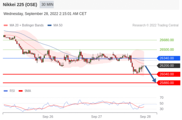 交易策略: 在 26340.00 之下,看跌,目标价位为 26040.00 ,然后为 25880.00 。