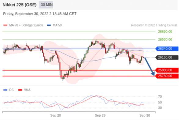 交易策略: 在 26340.00 之下,看跌,目标价位为 25900.00 ,然后为 25780.00 。