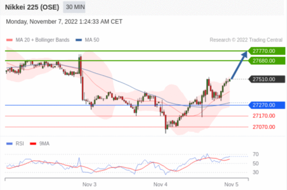 交易策略: 在 27270.00 之上,看涨,目标价位为 27680.00 ,然后为 27770.00 。