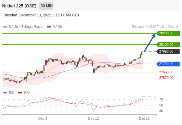 交易策略: 在 27790.00 之上,看涨,目标价位为 28100.00 ,然后为 28280.00 。