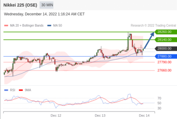交易策略: 在 27880.00 之上,看涨,目标价位为 28140.00 ,然后为 28260.00 。
