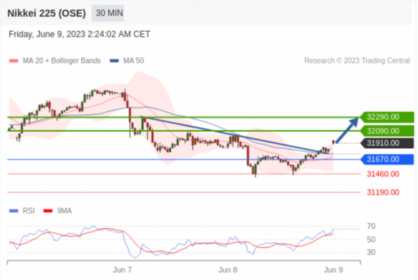 交易策略: 在 31670.00 之上,看涨,目标价位为 32090.00 ,然后为 32290.00 。