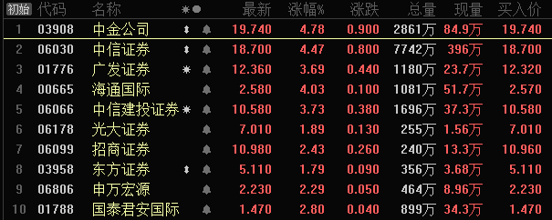 香港市场还有一个非常值得重视的现象,那就是香港的中资券商股。这个板块今天再度大幅上涨。