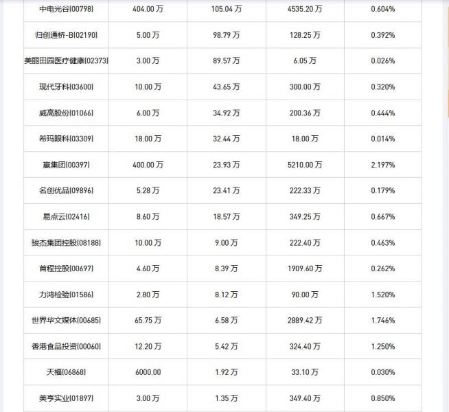 现代牙科(03600)、摩比发展(00947)、天福(06868)、信利国际(00732)、归创通桥-B(02190)、万咖壹联(01762)、蒙牛乳业(02319)、首佳科技(00103)、威高股份(01066)、中电光谷(00798)、力鸿检验(01586)、中集集团(02039)、友邦保险(01299)、世界华文媒体(00685)、捷利交易宝(08017)、嬴集团(00397)、名创优品(09896)、旭日企业(00393)、首程控股(00697)、希玛眼科(03309)、创新奇智(02121)、康臣药业(01681)、IGG(00799)、香港食品投资(00060)、和铂医药-B(02142)、美亨实业(01897)、美丽田园医疗健康(02373)、骏杰集团控股(08188)、玄武云(02392)、中国恒有源集团(08128)、彩客新能源(01986)、易点云(02416)、名创优品(09896)、百胜中国(09987)、百胜中国(09987)、贝壳-W(02423)于2025年7月11日进行了回购。其中,回购金额最大的为友邦保险(01299),回购数量400.00 万,回购金额2.80 亿元。