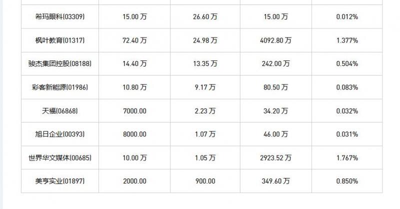 力鸿检验(01586)、蒙牛乳业(02319)、威高股份(01066)、中集集团(02039)、中国铝罐(06898)、万咖壹联(01762)、世界华文媒体(00685)、IGG(00799)、天福(06868)、现代牙科(03600)、归创通桥-B(02190)、名创优品(09896)、康臣药业(01681)、旭日企业(00393)、中电光谷(00798)、枫叶教育(01317)、中国旭阳集团(01907)、美亨实业(01897)、骏杰集团控股(08188)、乐华娱乐(02306)、彩客新能源(01986)、希玛眼科(03309)、加科思-B(01167)于2025年7月15日进行了回购。其中,回购金额最大的为万咖壹联(01762),回购数量714.00 万,回购金额506.03 万元。