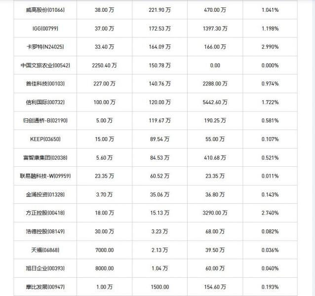 方正控股(00418)、摩比发展(00947)、富智康集团(02038)、网龙(00777)、信利国际(00732)、VITASOY INT'L(00345)、旭日企业(00393)、清科创业(01945)、卡罗特(N24025)、津上机床中国(01651)、蒙牛乳业(02319)、首佳科技(00103)、浩德控股(08149)、中国文旅农业(00542)、归创通桥-B(02190)、()、美高梅中国(02282)、金涌投资(01328)、联易融科技-W(09959)、恒生银行(00011)、天福(06868)、IGG(00799)、腾讯控股(00700)、中旭未来(09890)、快手-W(01024)、普华和顺(01358)、KEEP(03650)、威高股份(01066)、潍柴动力(02338)、固生堂(02273)、天立国际控股(01773)、中国宏桥(01378)于2025年9月1日进行了回购。其中,回购金额最大的为腾讯控股(00700),回购数量91.00 万,回购金额5.50 亿元。