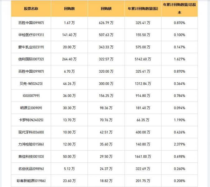 07月28日港股回购概况: 卡罗特(N24025)、蒙牛乳业(02319)、首佳科技(00103)、嬴集团(00397)、明源云(00909)、美亨实业(01897)、现代牙科(03600)、信利国际(00732)、中集集团(02039)、世界华文媒体(00685)、万咖壹联(01762)、IGG(00799)、力鸿检验(01586)、中国东方航空股份(00670)