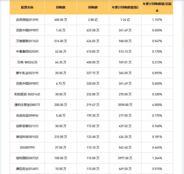 07月14日港股回购概况: 现代牙科(03600)、摩比发展(00947)、天福(06868)、信利国际(00732)、归创通桥-B(02190)、万咖壹联(01762)、蒙牛乳业(02319)、首佳科技(00103)、威高股份(01066)、中电光谷(00798)、力鸿检验(01586)、中集集团(02039)、友邦保险(01299)、世界华文媒体(00685)