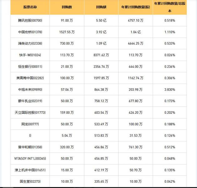09月04日港股回购概况: 摩比发展(00947)、方正控股(00418)、信利国际(00732)、旭日企业(00393)、卡罗特(N24025)、枫叶教育(01317)、蒙牛乳业(02319)、首佳科技(00103)、津上机床中国(01651)、腾讯控股(00700)、天福(06868)、威高股份(01066)、中电光谷(00798)、力鸿检验(01586)、明