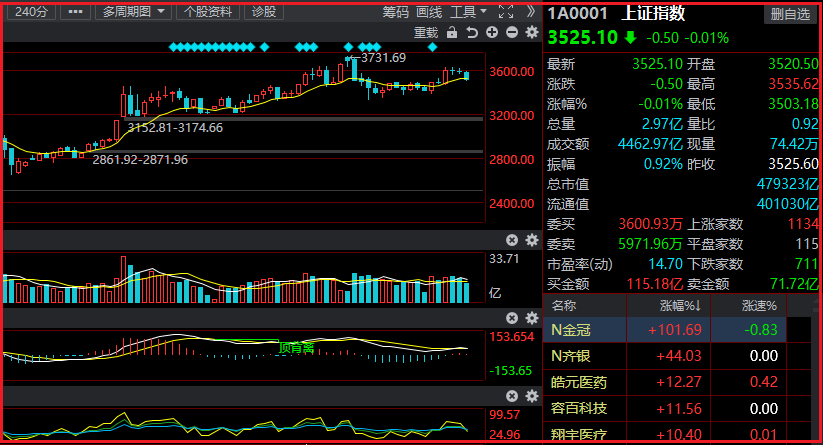 3.周五大盘虽走出探底回升格局,但做多动力仍不足。主因是银行、保险调整,白酒冲高后杀跌仍未有企稳。导致上证股指盘中数次下探半年线-3500点间。走势上,大盘经过连续调整后,周五放量但并未收阳,在半年线上方做出平台迹象。但并未排除回补3497-3502点缺口的可能。