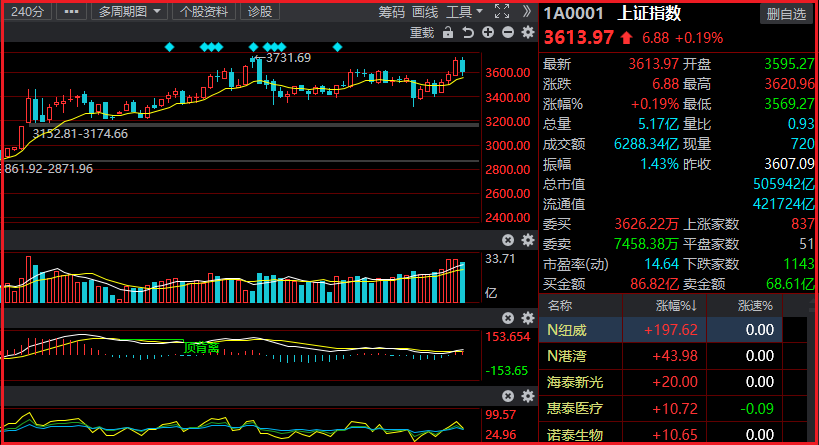 这周走势有点神秘,典型的“十面埋伏”中,长江三叠浪放大招:3500的稳金融坚如磐石,3600的低周期稳坐钓鱼台,3558点上方对应16和18年的连线,金融已经稳定,3638点再确认,周期断崖的千年度已经修复了的!盘面典型的“第三浪”高质量消费又在筑底3731点,会否十五月亮十六圆!市场由于成交额连续保持较大,特别是今年9月以来持续达到去年7月上旬形成阶段压力点成交量的水平,市场筹码得到较位充分的换手,从中期看,经过蓄势后,未来上行的基础仍然存在。