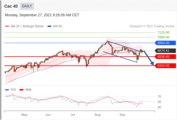 Cac 40 短线交易策略: 在 6864.00 之下 目标价位为 6530.00