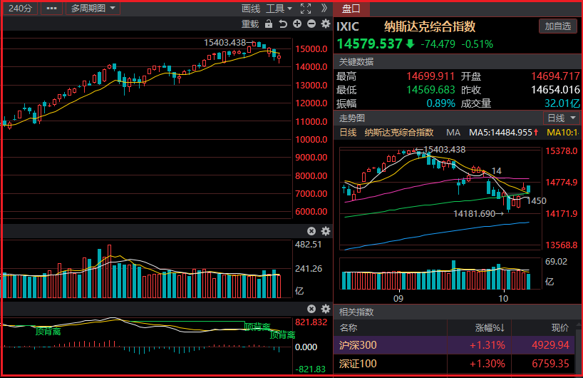 美东时间周五,美国9月非农数据不及预期,美股三大指数集体下跌,终结连续三天的涨势。截止收盘,道指跌8.69点,跌幅0.03%,报34746.25点;纳指跌74.48点,跌幅0.51%,报14579.54点;标普500指数跌8.42点,跌幅0.19%,报4391.34点。