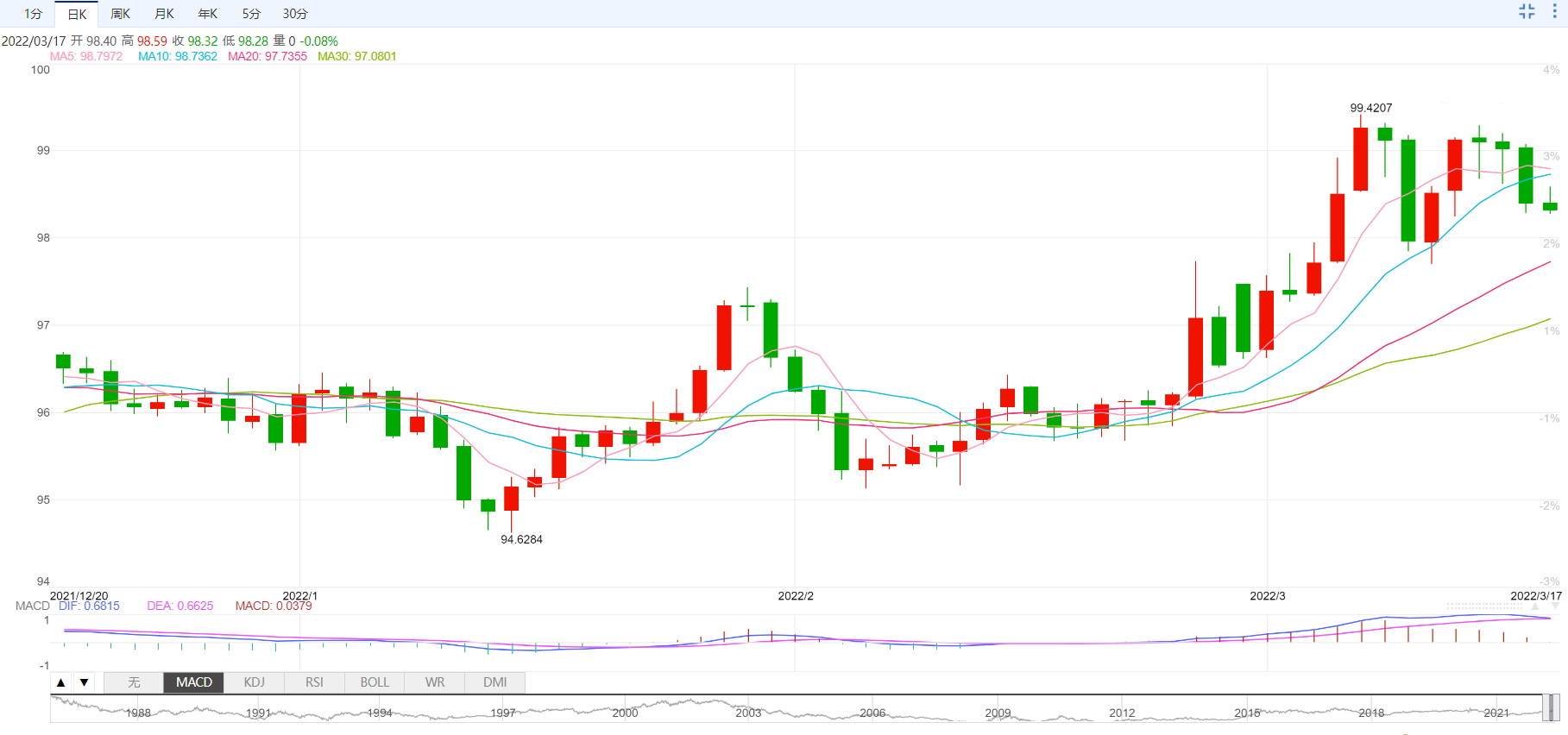 美国2月零售销售增速大幅放缓,加之美联储加息预期已被消化,周四(3月17日)美元指数震荡下行,盘中一度跌破98.30关口。欧元兑美元震荡上行,截止目前欧元兑美元在1.1040一线徘徊。澳元兑美元震荡上行,截止目前澳元兑美元在0.7310一线徘徊。 美联储3月加息25基点 据悉,年初以来美国劳动就业增长强劲,失业率大幅下