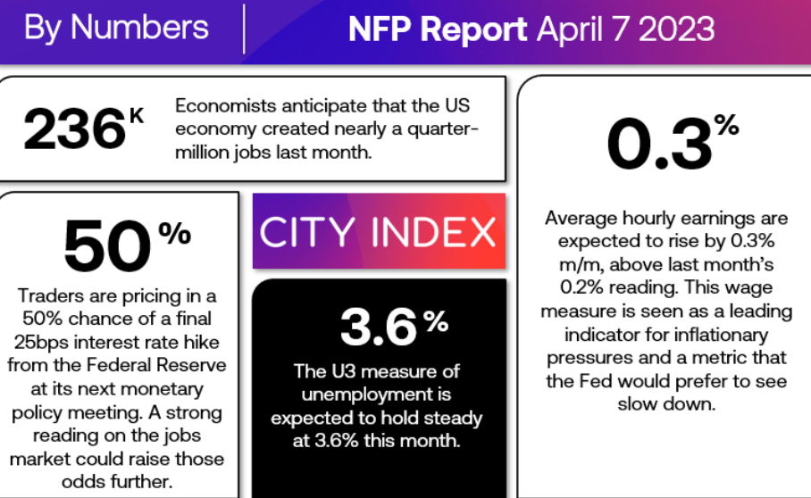 4月7日,周五正逢耶稣受难日,美国处于假期中,今晚北京时间20:30将公布美国2023年3月非农就业报告,这天公布的美国3月非农就业报告对美元的影响可能会延续到复活节之后,特别是如果这些数据比预期更疲弱的话。 非农数据前瞻 结合多个外媒对机构进行的调查显示,此次非农报告中新增就业人数预计会增加23.5-24