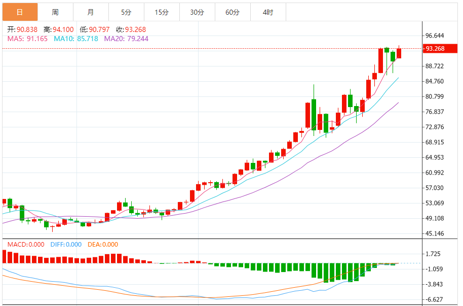 周一(1月19日),现货白银目前位于93.253美元/盎司附近,涨幅为3.56%。 白银价格在最后一个交易日飙升,攻击了93.00美元的关键阻力,准备创下新的历史新高,受益于相对强势指标的积极信号,此前与价格走势相比达到了夸张的超卖水平,短期内主要看涨趋势占主导地位,其在A50上方的交易继续提供动态支