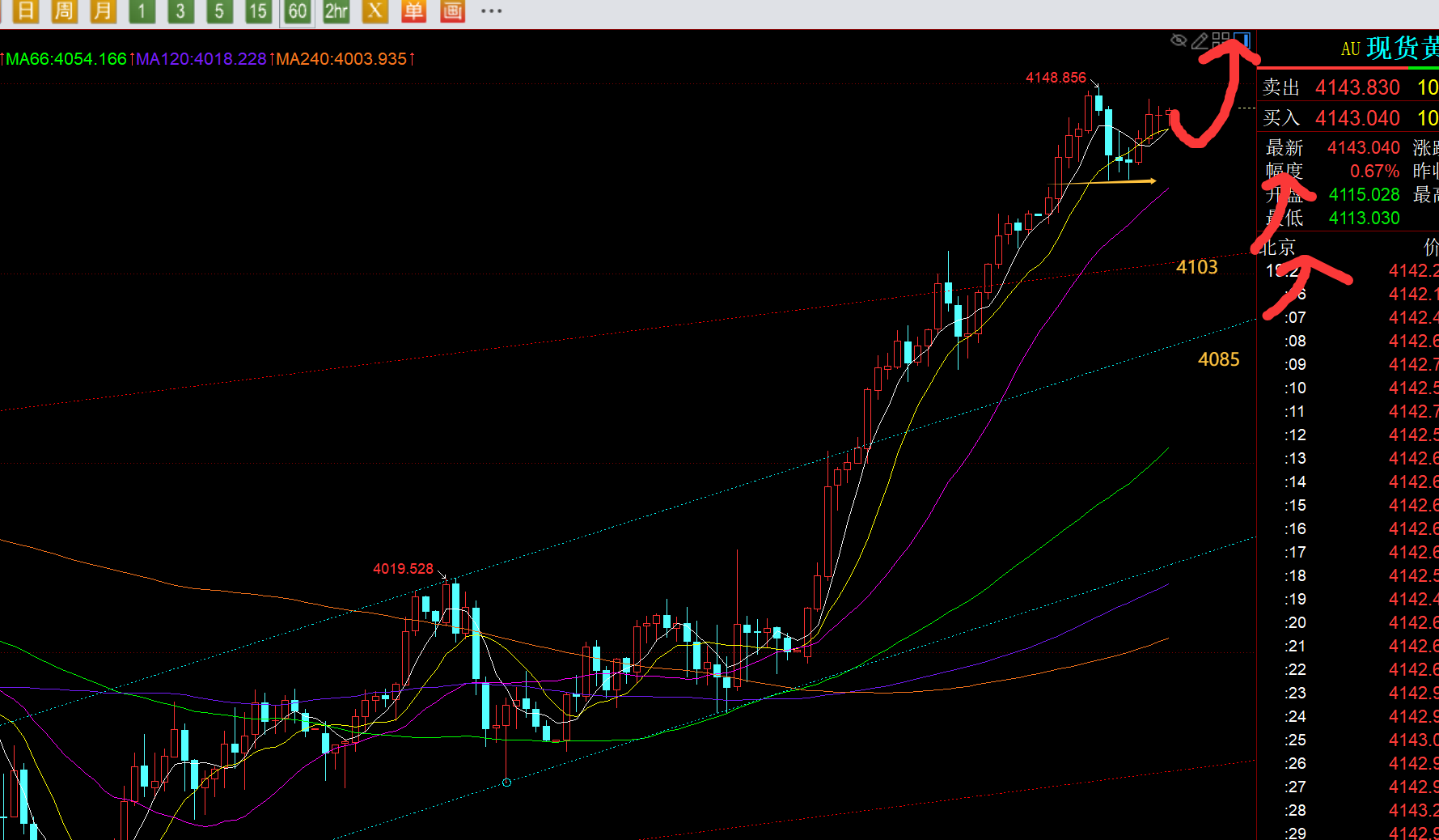 郑氏点银:黄金强势续涨,今晚4124作为节点稳住则继续上涨 回顾昨日行情走势及出现的技术点: 第一,黄金方面:昨日一整天都在持续逼空强拉,周末就计划一早触及3990上先继续看涨,但开盘4000左右就直接飙升;欧盘计划4060上看涨,只给到4071;美盘计划4065上看涨,只给到4074,全