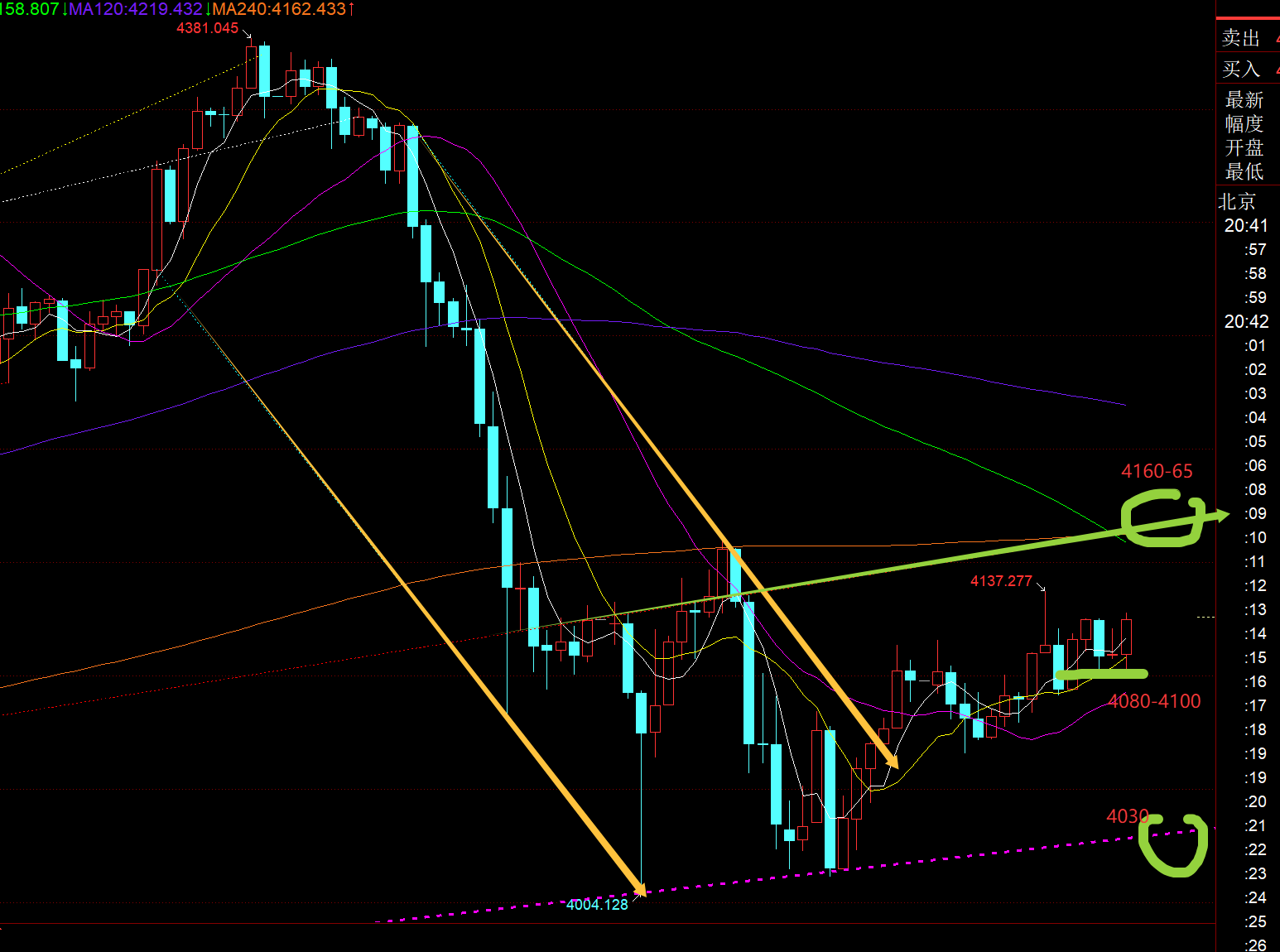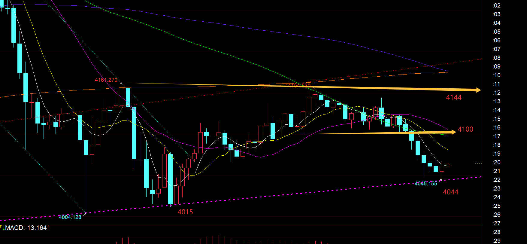 郑氏点银:黄金欧盘下破底部三角整理区间,今晚关注4060得失 回顾上周五行情走势及出现的技术点: 第一,黄金方面:上周五早间先回踩4107出现小双底支撑反弹,且突破了小时线66日均线阻力,则回踩跟随看一波反弹拉升,以4107作为风水岭防守,结果10点后并未延续,向下又重新