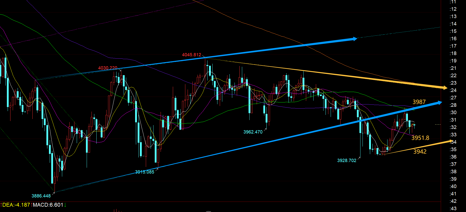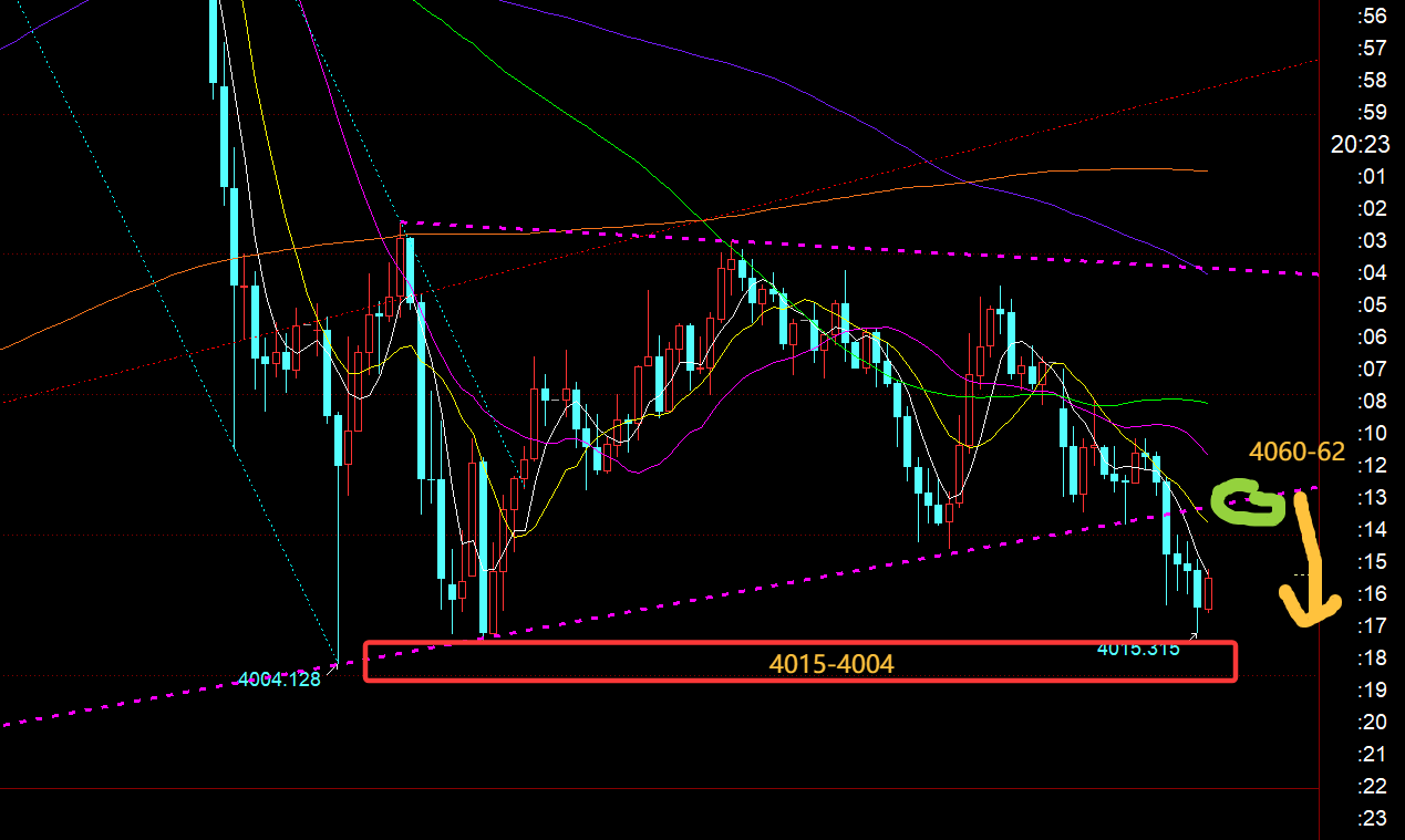 郑氏点银:今晚非农依旧是哑炮,走势仍震荡中 回顾昨日行情走势及出现的技术点: 第一,黄金方面:昨日从3965一路拉升至4020一线,走的比较偏强,有些小单边,但美盘并未跟随二次上涨,反而向下洗盘又跌回3965低点;从分割角度看,3965刚好是3930-4020的618处,半夜触及企稳出长下