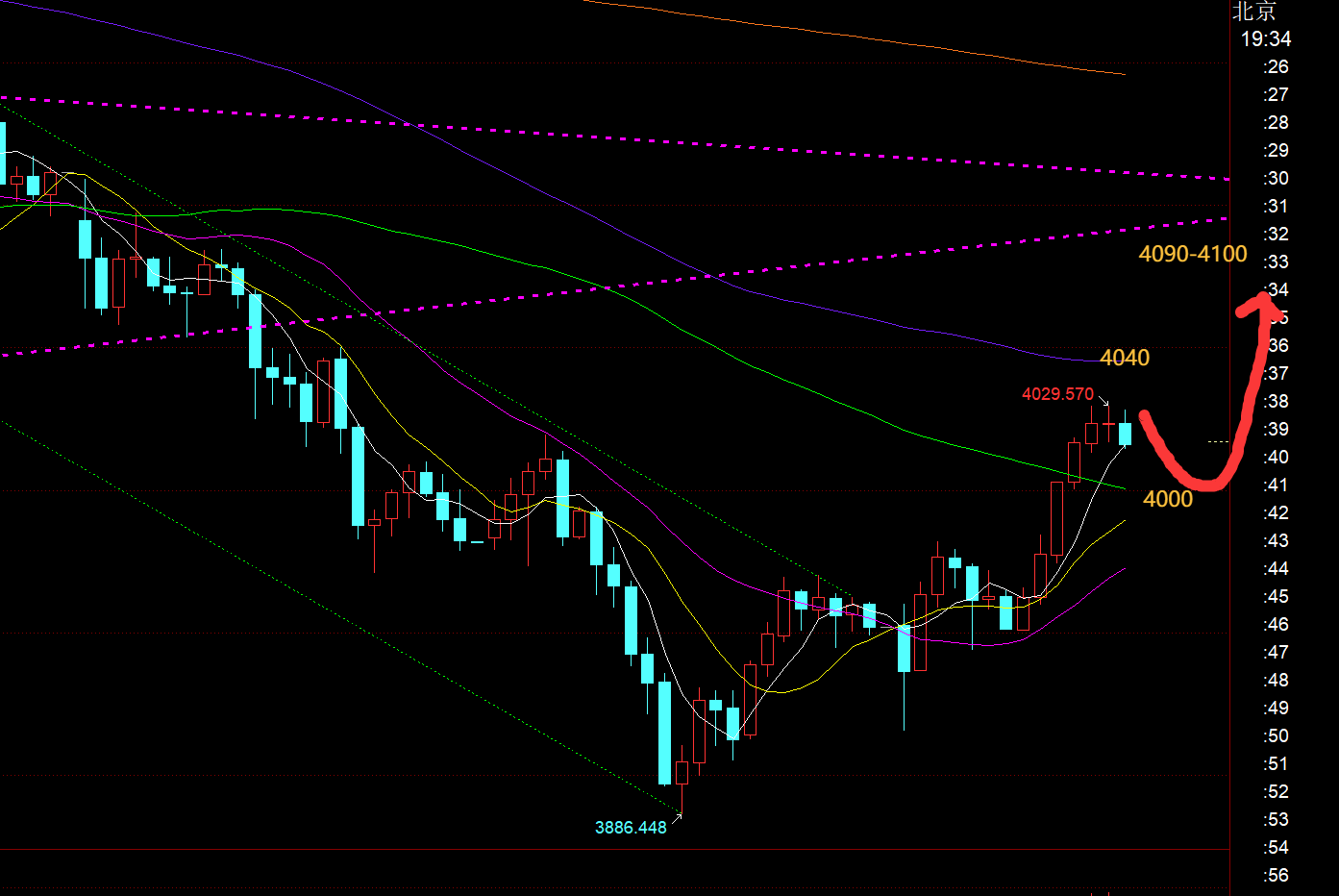 郑氏点银:黄金如期出拐点,能否站稳4040是冲击次高点的关键 今日行情分析解读: 第一,黄金周线级别:从今年以来,最大回测出现的就是两阴,所以预判上周会收阳,最终虽然收报一根十字K,但好歹稳住跌势,并未三连阴,这也就为本周拉升埋伏了伏笔,这也是周视频解读
