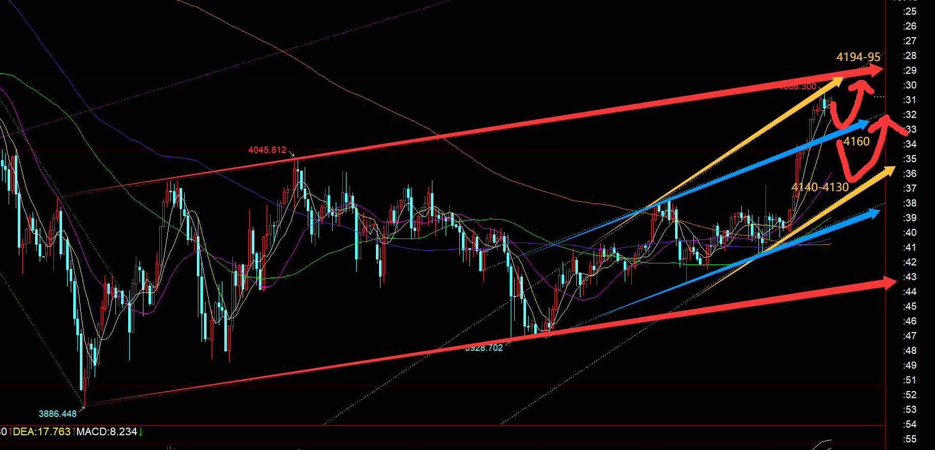 郑氏点银:今晚CI数据会带来不小的振幅,留意4044得失 回顾昨日行情走势及出现的技术点: 第一,黄金方面:前日隔夜一路探底拉升,则昨日早间先回踩计划618分割支撑4052看涨,但价格只给到4066;午后一波走高,欧盘回踩4100看涨,第一次只触及4101.5,略差,取消挂单后,第二次才