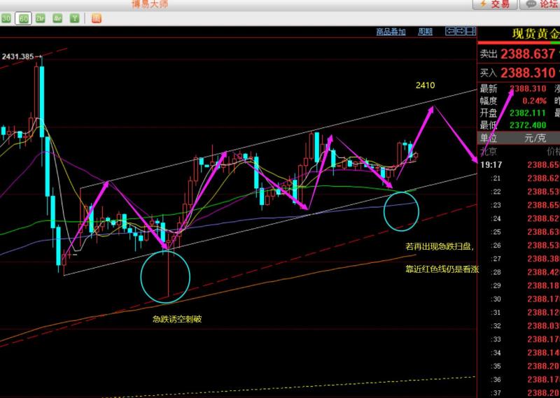 郑氏点银:黄金2364上继续坚持看涨,原油84失守走弱调整 回顾昨日行情走势及出现的技术点: 第一,黄金方面:昨日先依托凌晨横盘支撑2380上看涨,跟随强势修正规律,早间先拉,欧盘回测,美盘企稳,半夜拉高;但失败了,亚盘直接走了一个倒V下跌,回吐前日涨