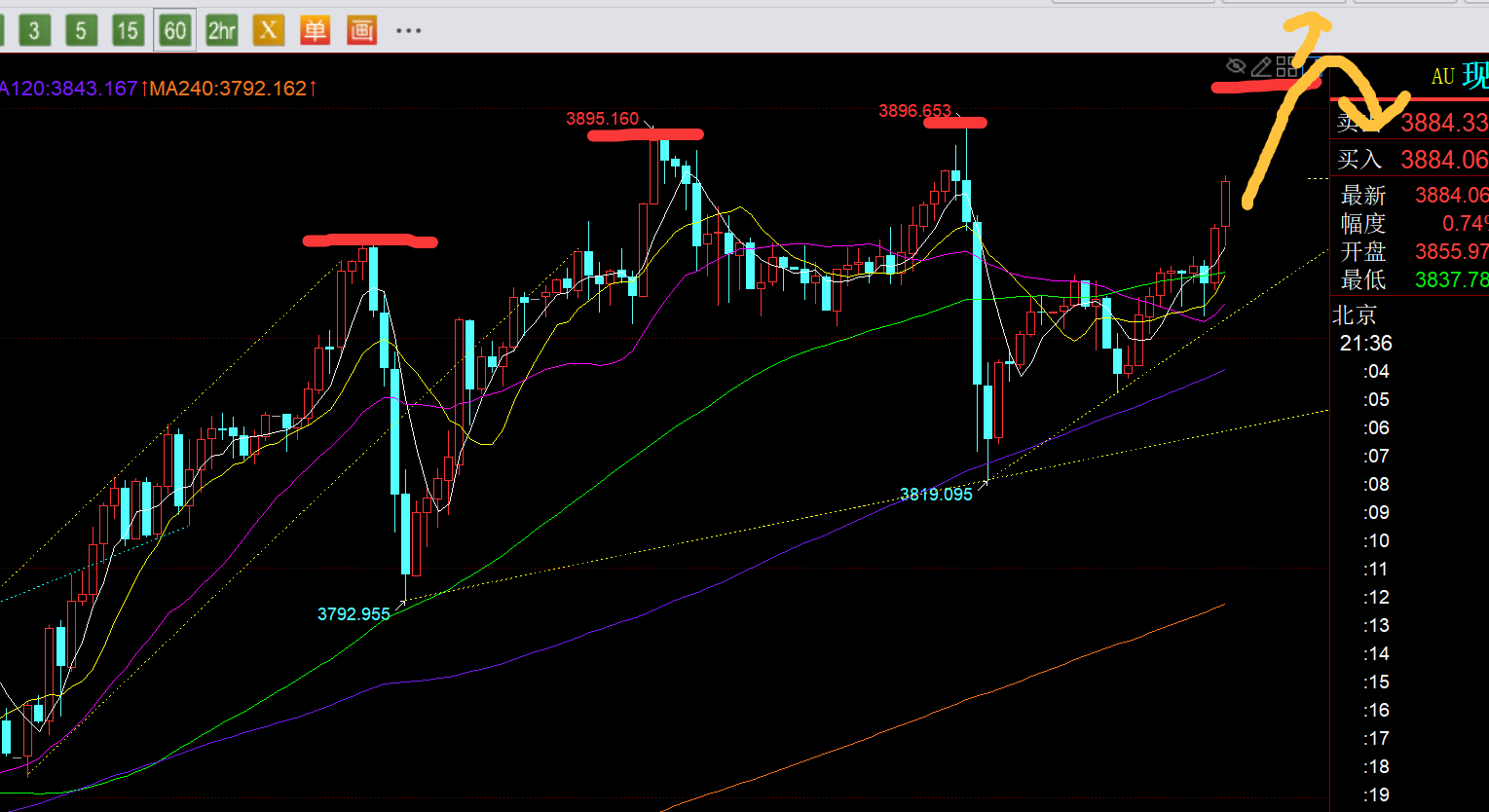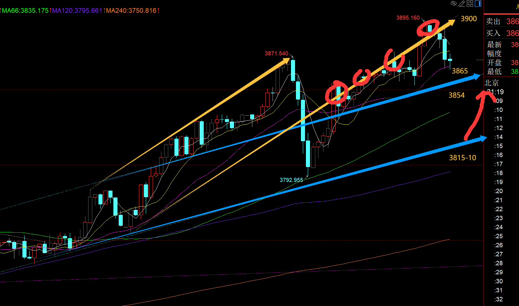 郑氏点银:黄金强势续涨逼近3900,今晚回踩一波仍需看涨 回顾昨日行情走势及出现的技术点: 第一,黄金方面:昨日一早是原本计划3823上继续看涨,但并未下行给到此为止,直接逼空连阳拉升一波冲击3870,而12点收报大阳,午后几个小时又是连阳,15点当时仍出现探底拉升,就没忍住,