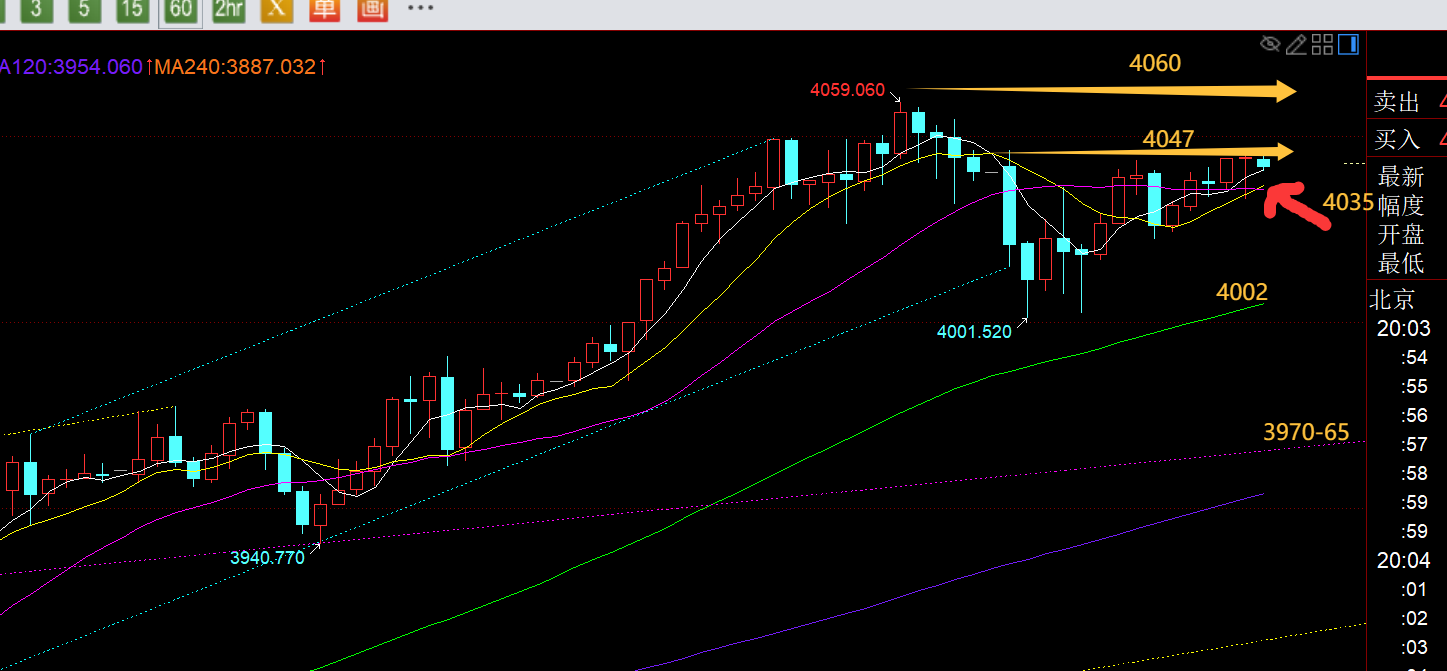 郑氏点银:今日黄金欧盘反复横跳,留意小时线10日得失 回顾昨日行情走势及出现的技术点: 黄金方面:昨日早间直接强势续涨,连阳发力冲到4035出现一些承压,当时也是短期通道的上轨阻力位,另外日线开始脱离5均线,则高位不太敢继续追涨,依托上轨阻力,轻仓逆势尝试看一波回踩,再