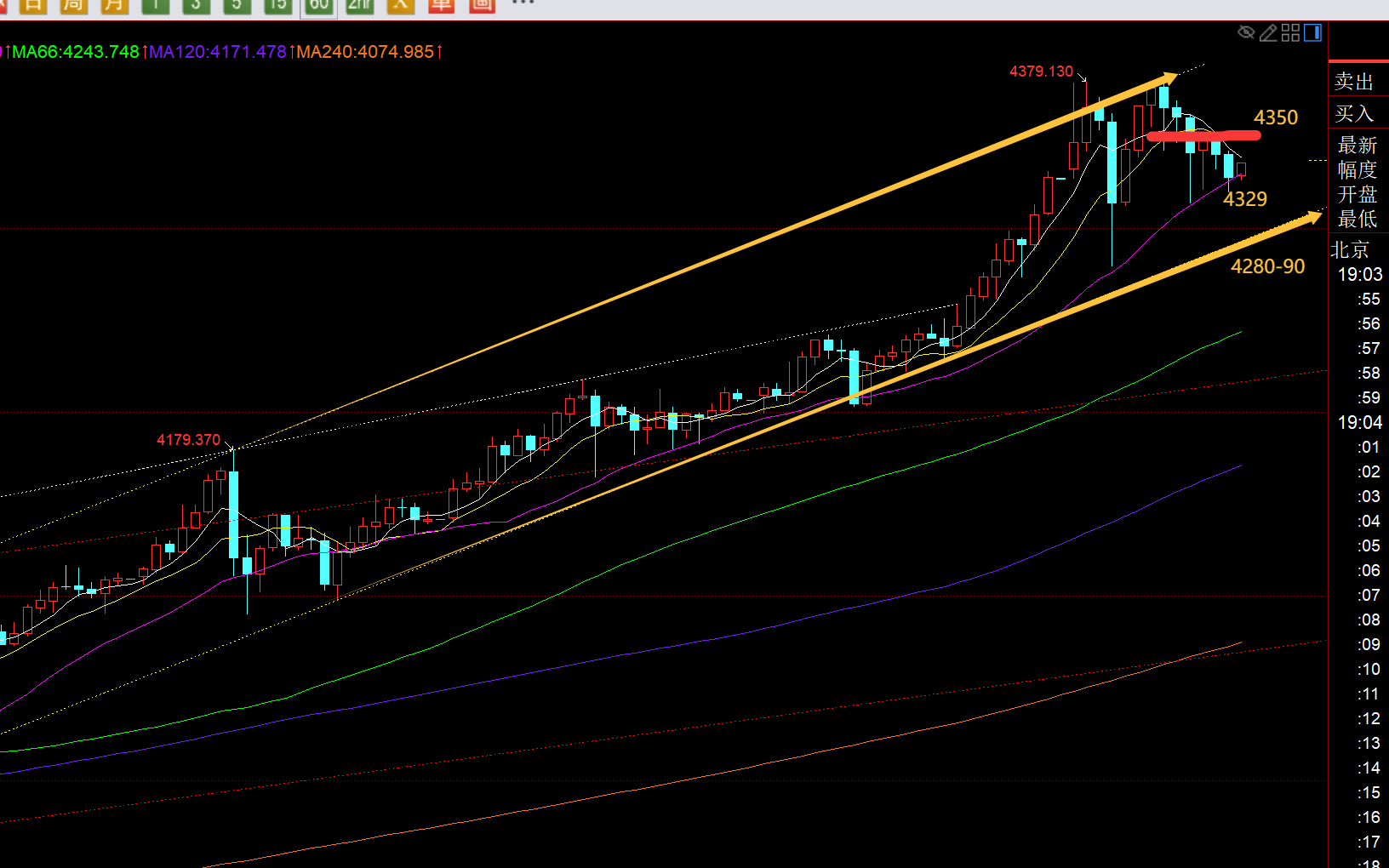 郑氏点银:黄金上升收敛三角步入末端,4255下谨防再出获利盘 回顾昨日行情走势及出现的技术点: 第一,黄金方面:昨日亚盘直接逼空一路慢涨,欧盘抵达趋势通道上轨4218一线承压,出现一波急速跳水至4165低点,稳住小时线中轨探底拉升;而整个美盘符合给出的区间4170-4225内反复震荡