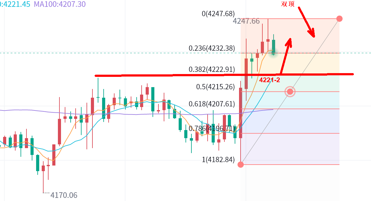 害怕的时候观望,比方周五强调的,用欧盘强势去布局,欧盘破高,美盘修正二次多,位置也恰恰是4221-2一线反抽破高。