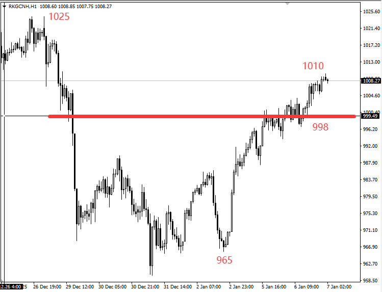 总的来说,现在黄金多头趋势很清晰,大家可以盯着998元/克(4454美元/盎司)这个关键位来把握节奏,顺势跟着市场走准没错!