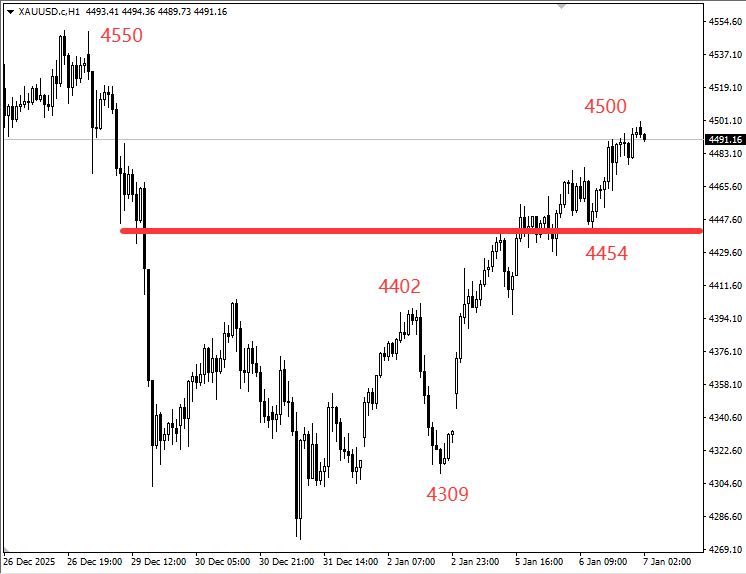 但如果跌破4454,那短期走势可能就要变,得留意回调的情况。