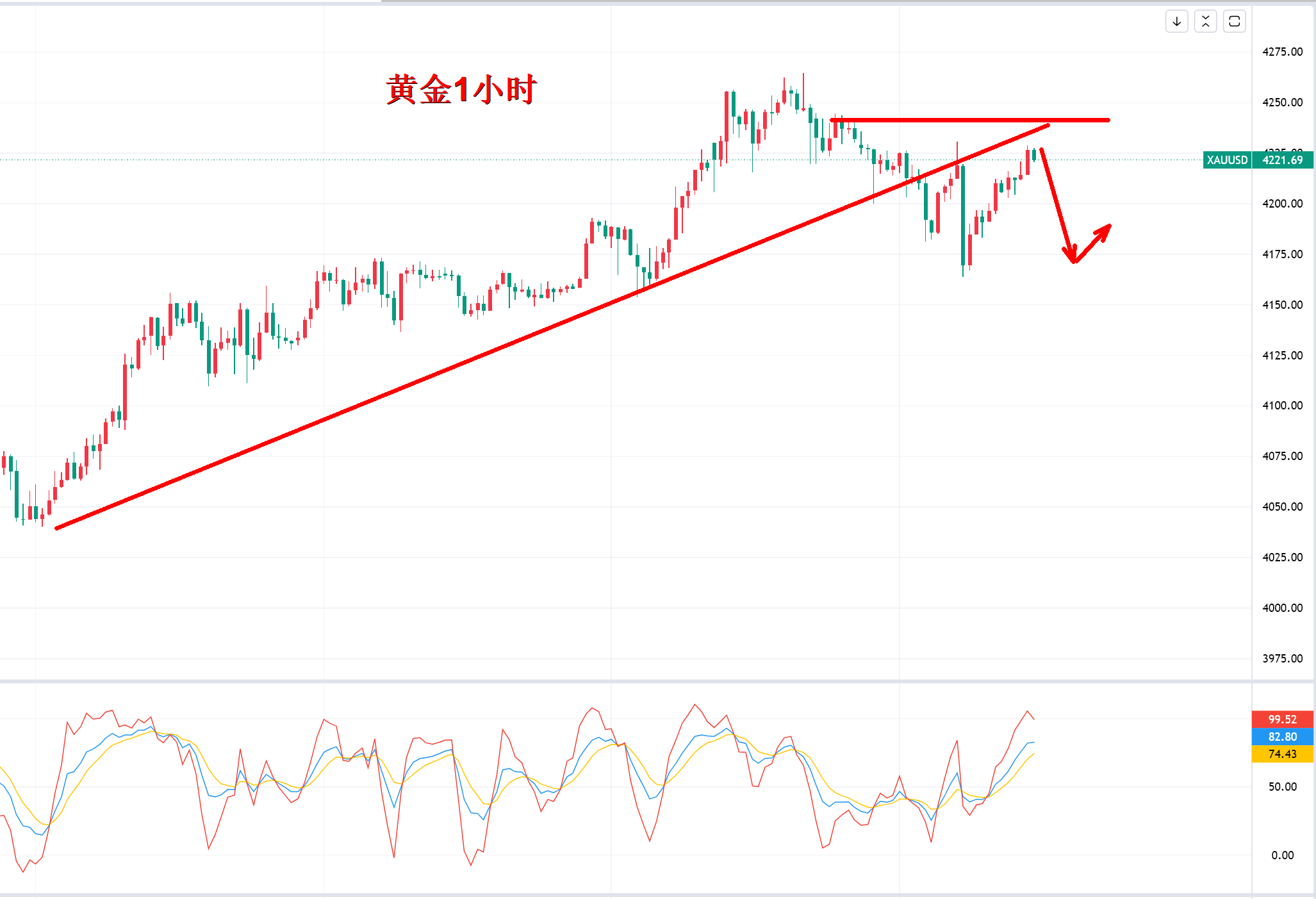 今天,我还是前两天的观点不变,高空为主,中途可以搭配反弹多,但也只是波段为主,4215-4220美元作为今天空的入场点,前面4240美元上方决定多空,向下4185-4180美元,跌破前面4170-75支撑还能向下延续一波,谨防黑色星期五。