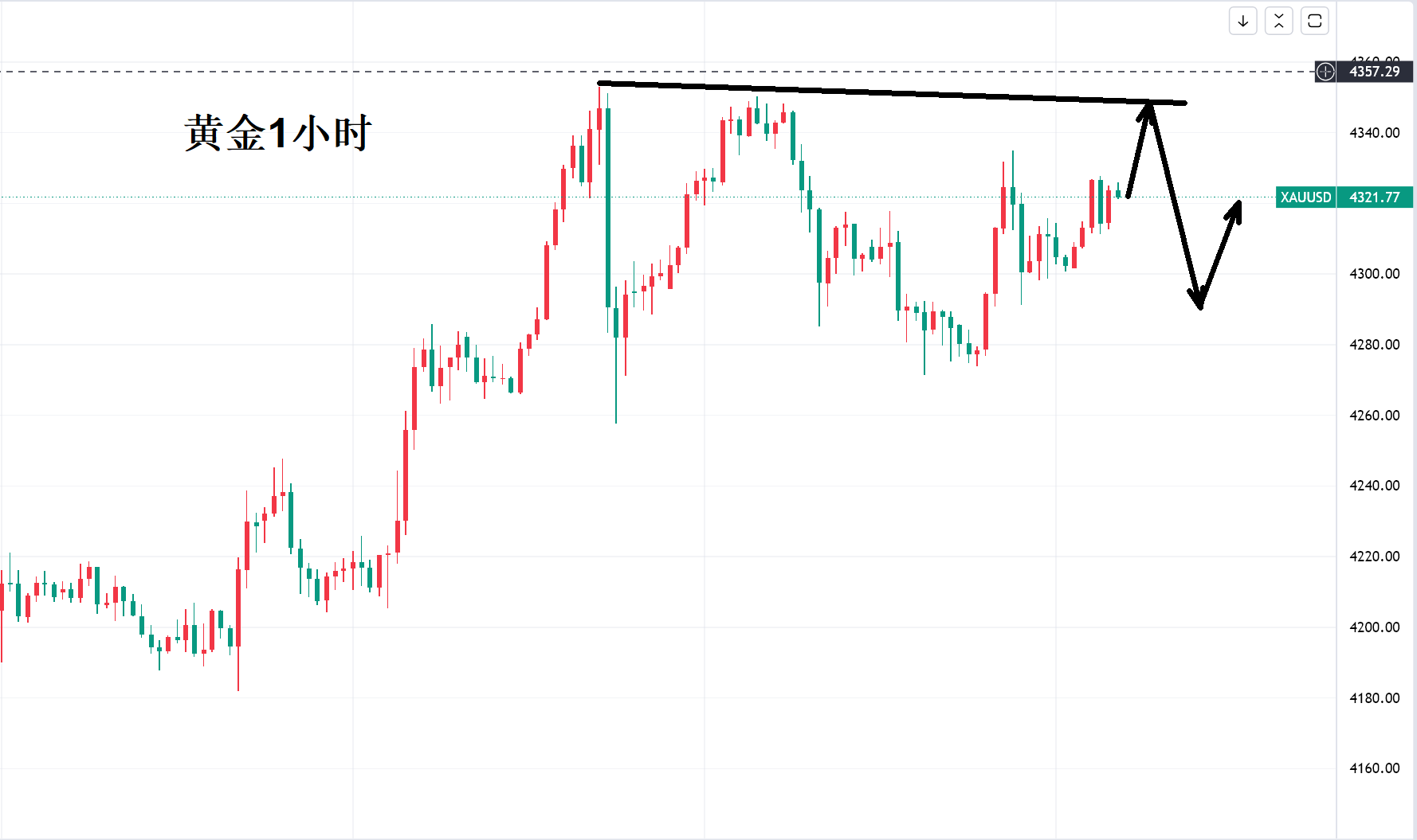 非农强中带弱马力有限,金价上蹿下跳反复洗盘,4350美元成为阻碍多头前进的一座山。