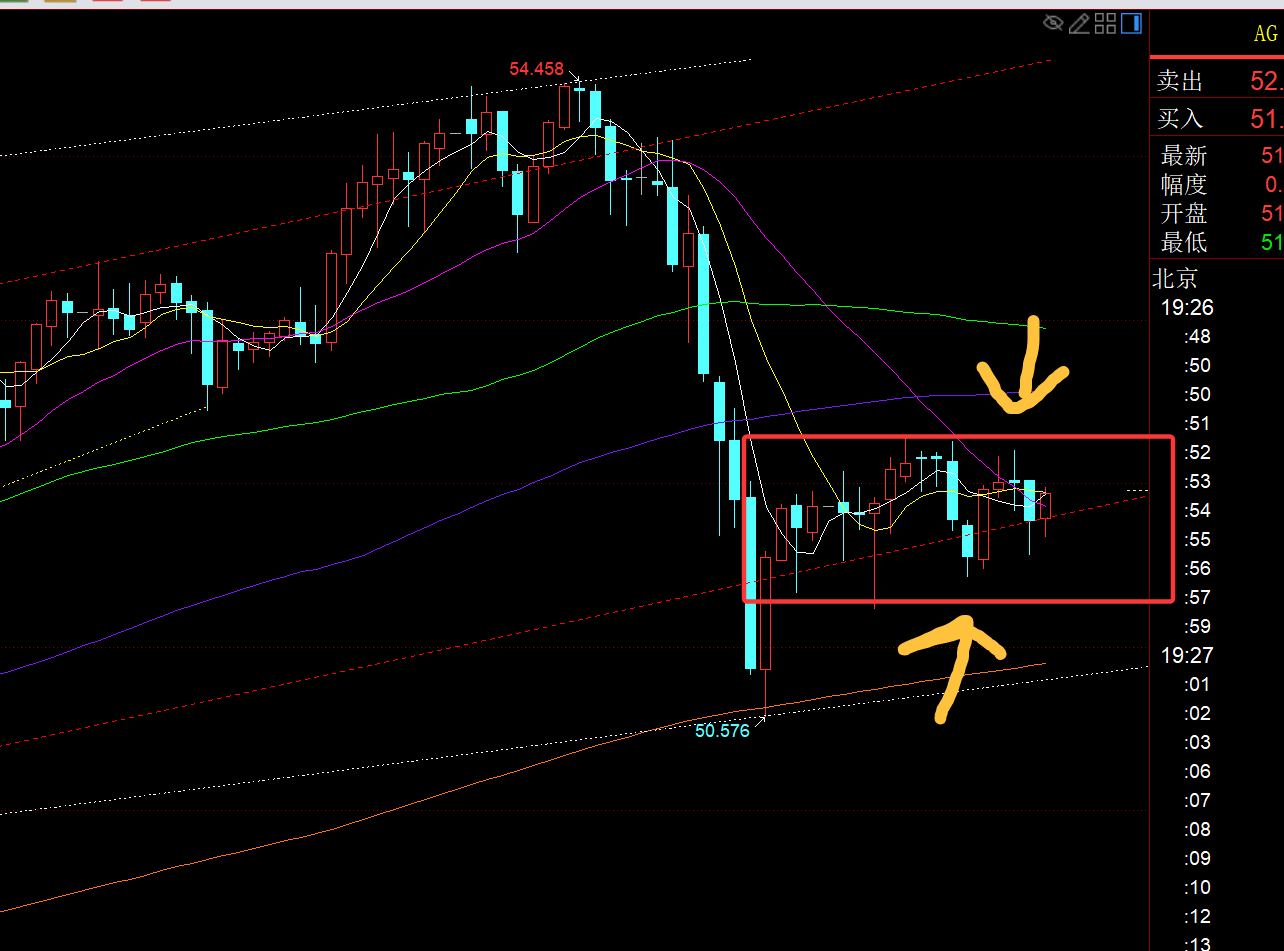 白银方面:日内它的走势也是如此,持续横盘,等待突破;从日线形态看,比黄金弱一些,试探了10均线,今日5均线52.5下成为一定压制,10均线支撑上移51-50.9,所以要关注它们哪边有效突破的问题;若重新收盘站上5日,则会马上走强去试探前高54.5一线;反之,有效跌破10日,则会延续下调,可能会逐步试探中轨再需求企稳; 而今日当前的震荡小范围是52.28-51.53;在未突破站上52.5之前,先不急于追涨;同样跌至51-50.9,甚至逼近隔夜低点50.5了,也谨慎追跌,因为macd也会底背离出现;最适合的52.5之下先尝试逢高看回落,50.5之上尝试逢低看企稳;