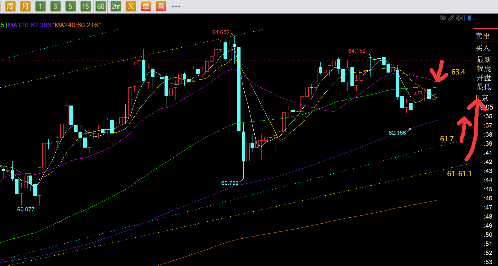 回顾昨日行情走势及出现的技术点: