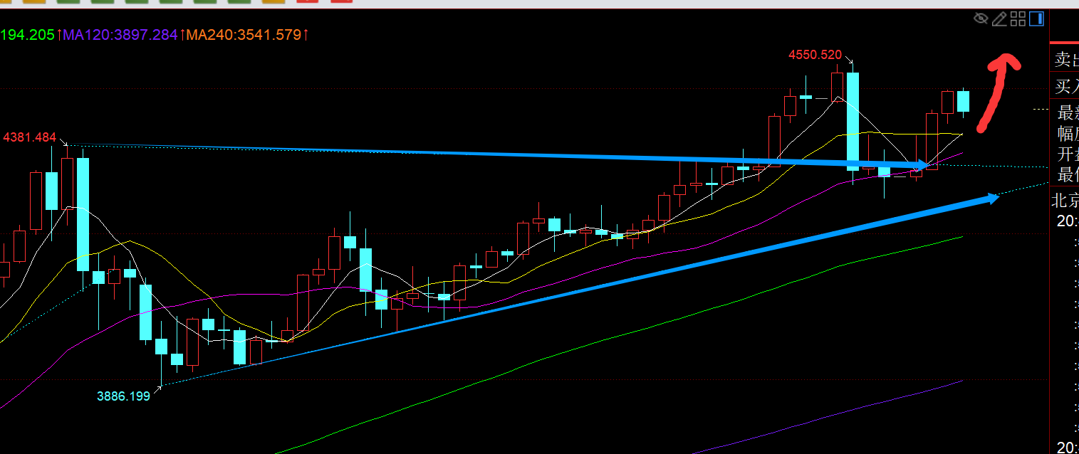 第一,黄金日线级别:昨日收报一根饱满大阳K,收盘站上10均线,这是出短期底部的信号,4400-4300底部区间整理基本就告一段落,接下来就是逐步向北上发展;并且前几日反复指出,这轮走法和11月中旬那一波及其雷同,今日则是回踩去等待确认10日的突破有效性,即4404-4414上继续看北;