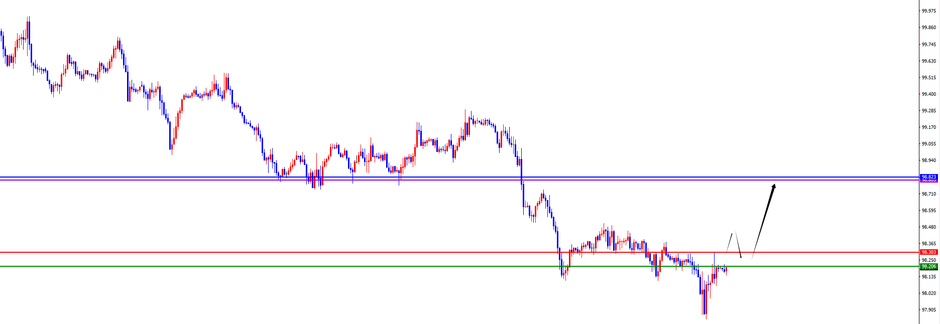 短线关键分水岭98.30-40区域,价格没有出现反转信号之前维持多
