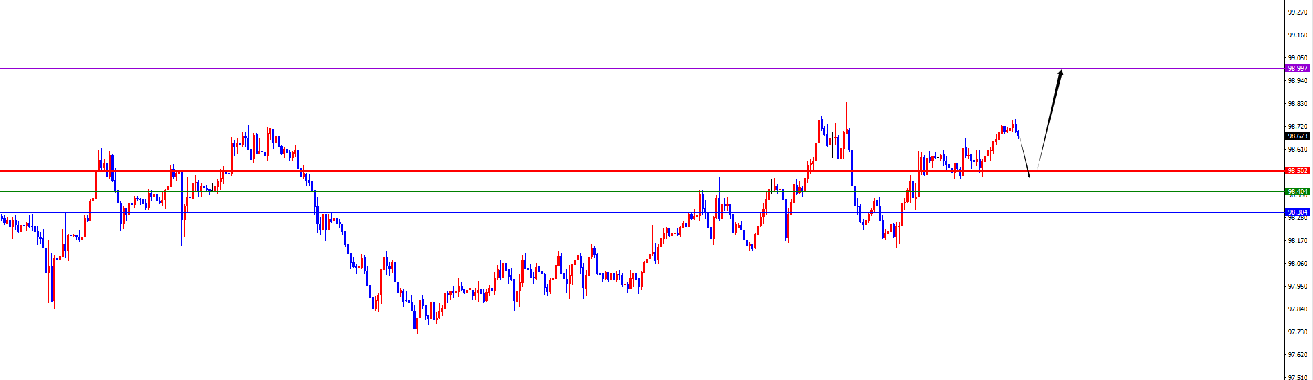 短线关键分水岭98.80区域,价格没有出现反转信号前看多