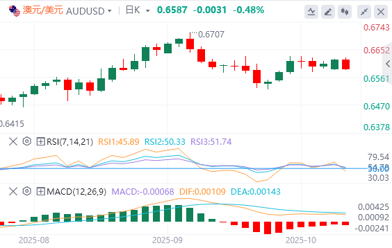 澳元/美元周二回落,但4小时图显示出更不确定的短期趋势,货币对回到0.6575至0.6630之间的水平区间。