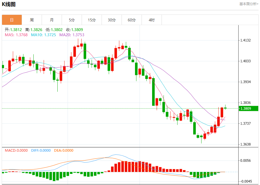 1月7日,周三欧市盘中,美元/加元汇率在1.3810附近小幅上涨。原油价格下跌对与大宗商品挂钩的加元(CAD)兑美元构成一定抛售压力。交易员们正准备关注美国经济数据,以获取美联储(Fed)可能降息时间线索。