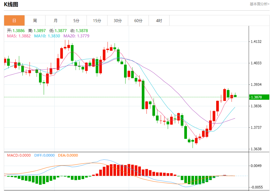 从日线结构来看,美元兑加元此前强势上行并一度站上200日均线,目前的回落更偏向技术性修正。1.3920附近构成阶段性阻力,而下方1.3800区域则是短期重要支撑位。