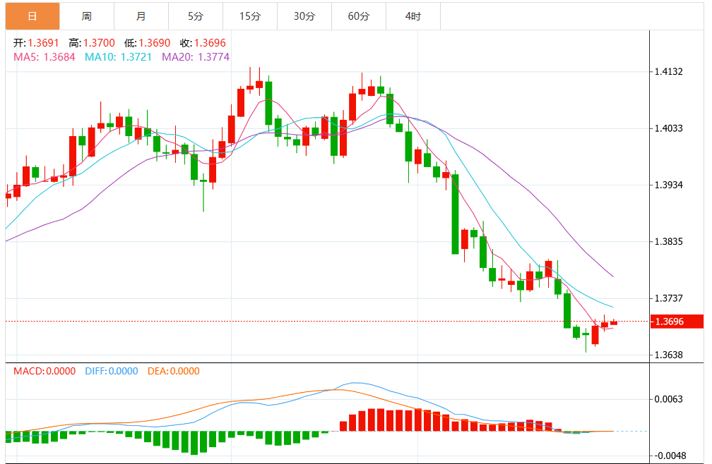 美元兑加元今日汇率最高1.3702,最低1.3700,涨跌0.0006,涨跌幅0.04%。 市场基本面分析 加拿大央行维持2.25%基准利率不变,基调中性谨慎。11月CI为2.2%、新增就业5.3万个,失业率6.5%,三季度GD增2.6%,经济基本面支撑加元。市场预期其2026年一季度或降息,油价低迷可能加速该进程。 美元兑
